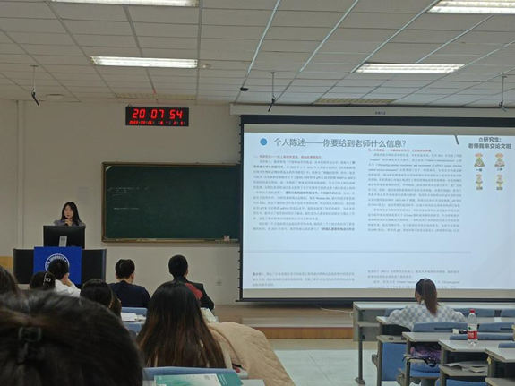 再生医学专业,他着重介绍了参加竞赛的经验,比如生科赛的时间线安排,以及对应时间内我们可以做的准备。张艳同学作为本校直博生简洁明了地介绍了如何寻找导师的问题,时间尽量为五月以前,渠道可以是邮件、微信、面对面等。康伯铭同学推免至北京大学基础医学院生物信息学专业,他详细的介绍了保研时间线,提醒同学们可以多投递自己的简历,寻找更多可能性,介绍了北医保研材料的要求,便于准备保研的同学提前进行充分的准备。许治清同学推免至北京协和医学院,她指出投递的单位不能太多,保留自己的精力,而且选择时应遵循"稳保冲"的选择,降低风险性,还介绍了北京协和医院,北京大学 第一会所