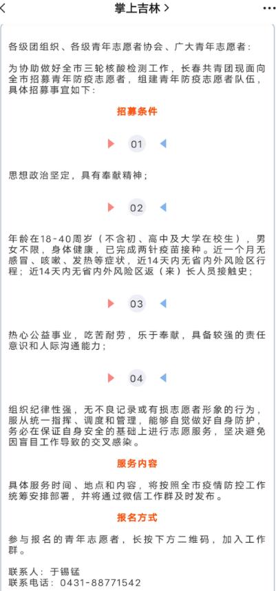 2022年3月,疫情突如其来席卷长春市,整个城市被按下了暂停键。由于没有及时回到学校宿舍,我被迫在家成为了“留守儿童”。每天的信息被疫情刷屏,疫情肆虐的前几天,掌上吉林在公众号上发布了一条“吉林省志愿者招募通知”,我立刻有了兴趣便积极报名参加。