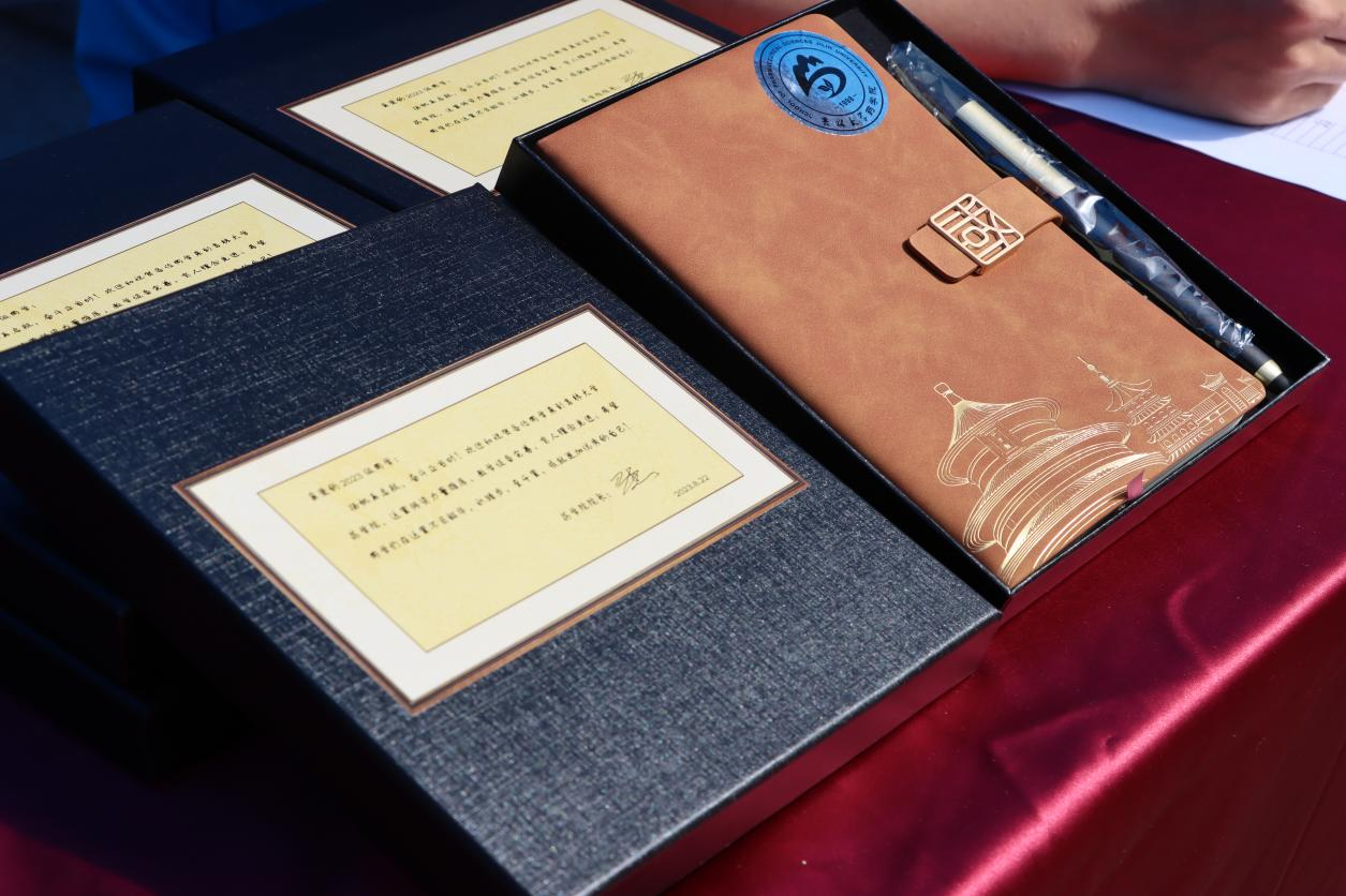 元素的笔记本和钢笔饱含着对学子学业有成的期许。院领导对现场工作人员的表现以及学办整体迎新工作给予了充分肯定。