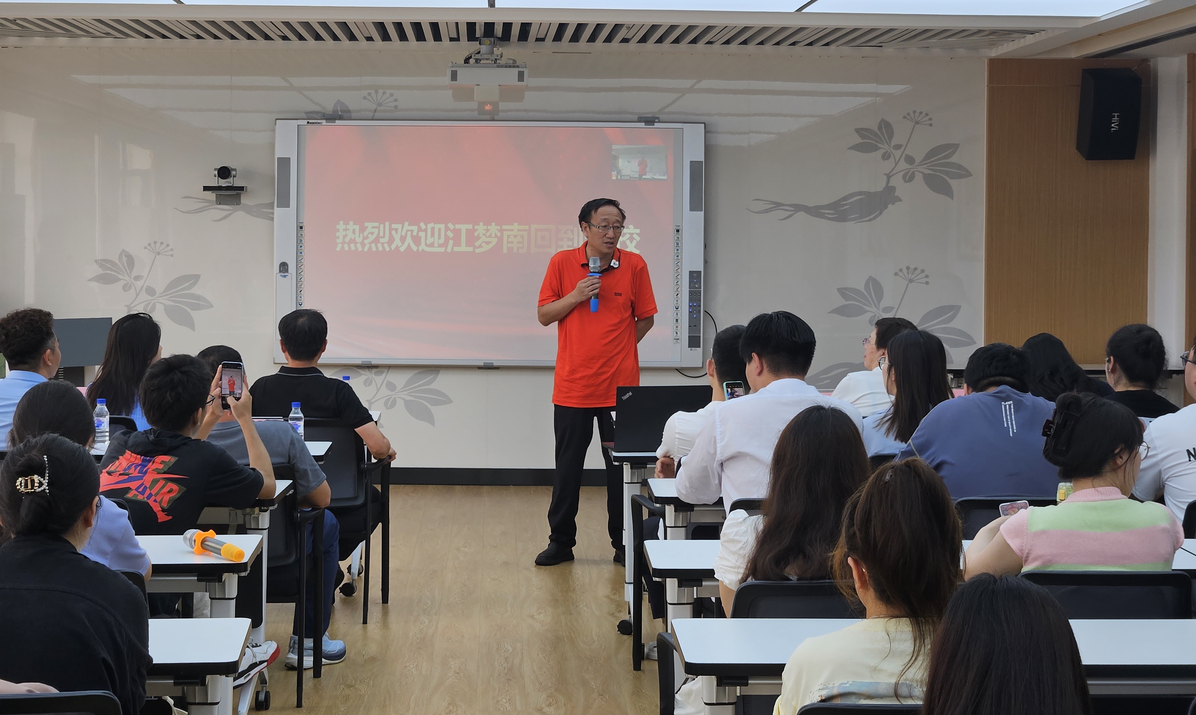 座谈会开始,刘丽慧副书记对优秀校友江梦南的学习成长经历进行了简要介绍。接下来梦南回忆了在 第一会所