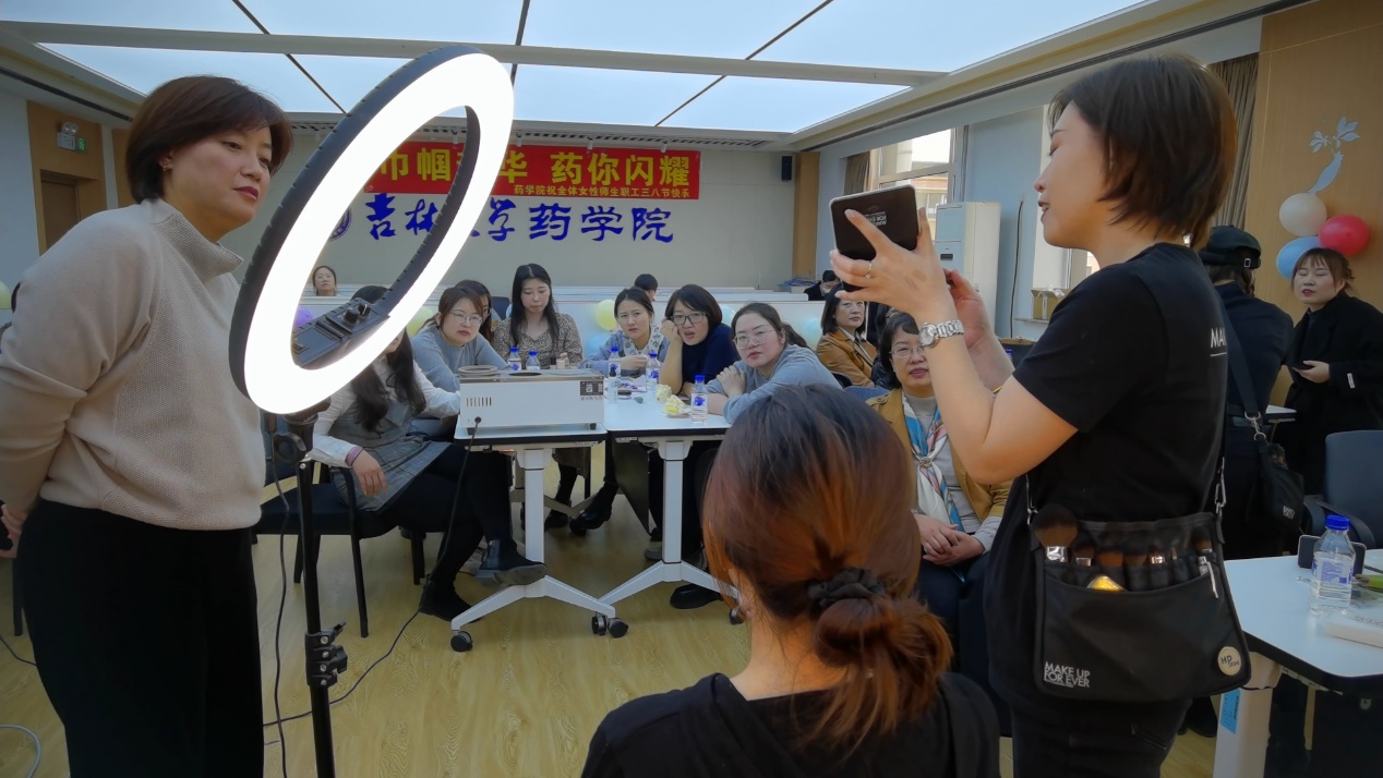 教职工设计日常的妆容,讲解上妆技巧,并拍摄了精美的工作照片。活动荣幸邀请到了学院领导班子以及全员女教职工老师参加了此次活动。
