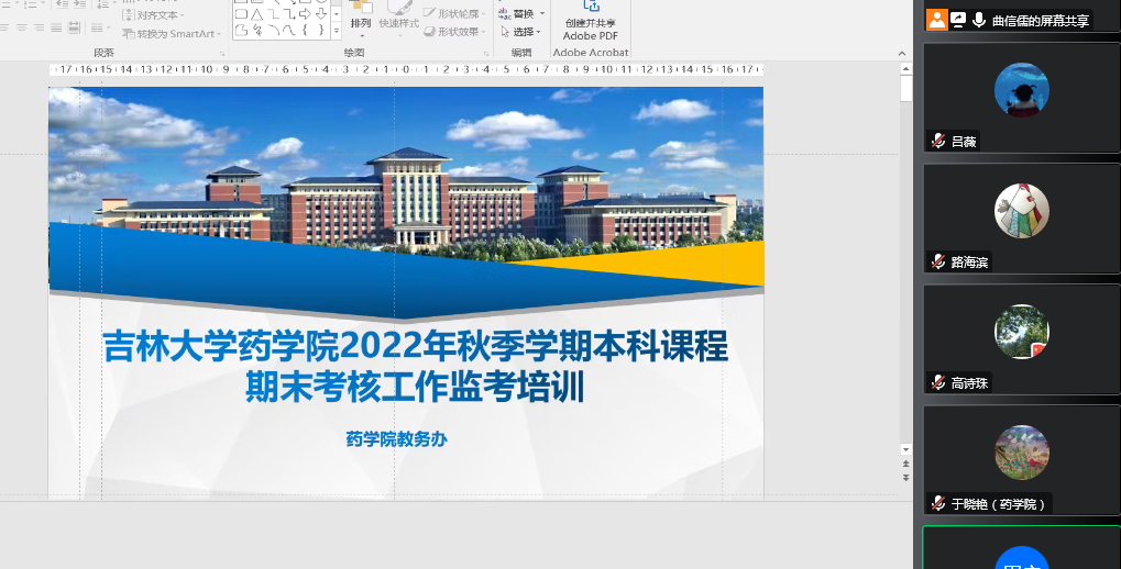 通过腾讯会议召开2022年秋季学期期末考试线上培训会。会议由教学副院长管清香主持,院长马杰、学院教务办工作人员及承担本学期本科生课程教学的全体教师参加了会议。超星平台工作人员也受邀参加。