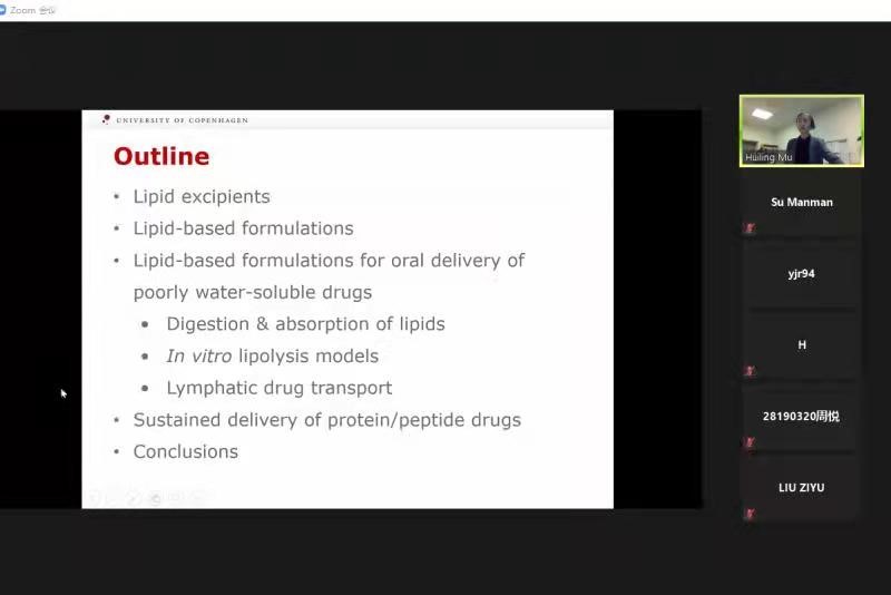 全体师生,每次讲座配1名驻课青年教师。5位教授分别从药物研发、药理机制、研究方法、科研选题等角度,结合新冠疫情等热点为同学们带来不同专题讲座。提问互动环节中,同学们踊跃发言。本次课程参与师生累计超过1000人次,并在每日讲座结束后填写调查问卷,对讲座效果进行实时反馈。参会学生们表示,本次活动受益匪浅,扩宽了学术视野,加深了对科研的理解,增加了对药学专业的信心,为日后继续深造指明了方向。参加课程学习的老师们表示,此次课程为他们搭建了国际合作科研平台,为推动进一步的国际科研合作奠定了良好的基础。学院将以此为契机,多措并举多方着力,持续形成人才培养的国际化、高质量的良好局面。