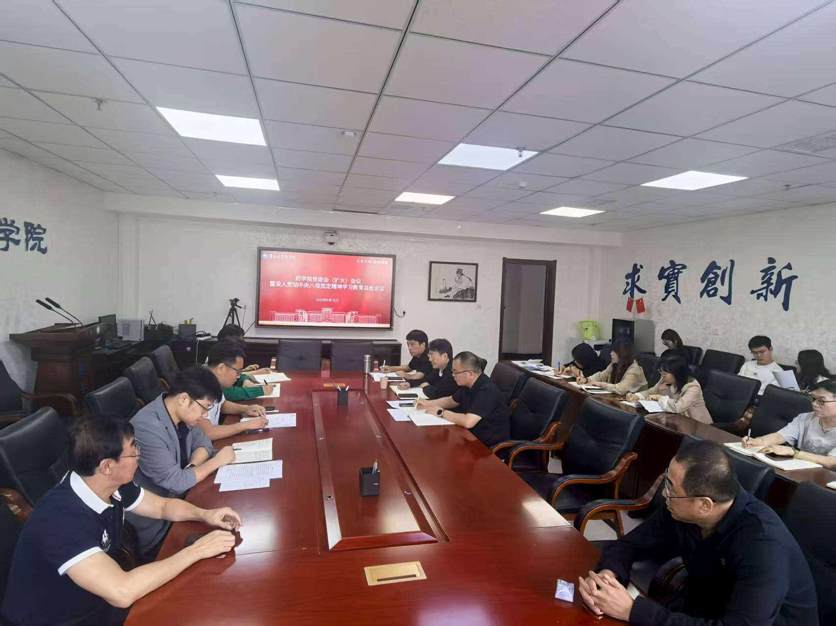 在508会议室召开党委(扩大)会议,总结学院深入贯彻中央八项规定精神学习教育开展情况,并传达学习学校秋季学期工作会议精神。 第一会所