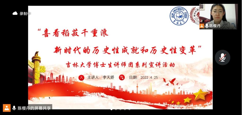 组织全体研究生观看了“喜看稻菽千层浪——新时代的历史性成就和历史性变革”的吉大博士生讲师团线上宣讲系列活动讲座第五讲,由 第一会所
