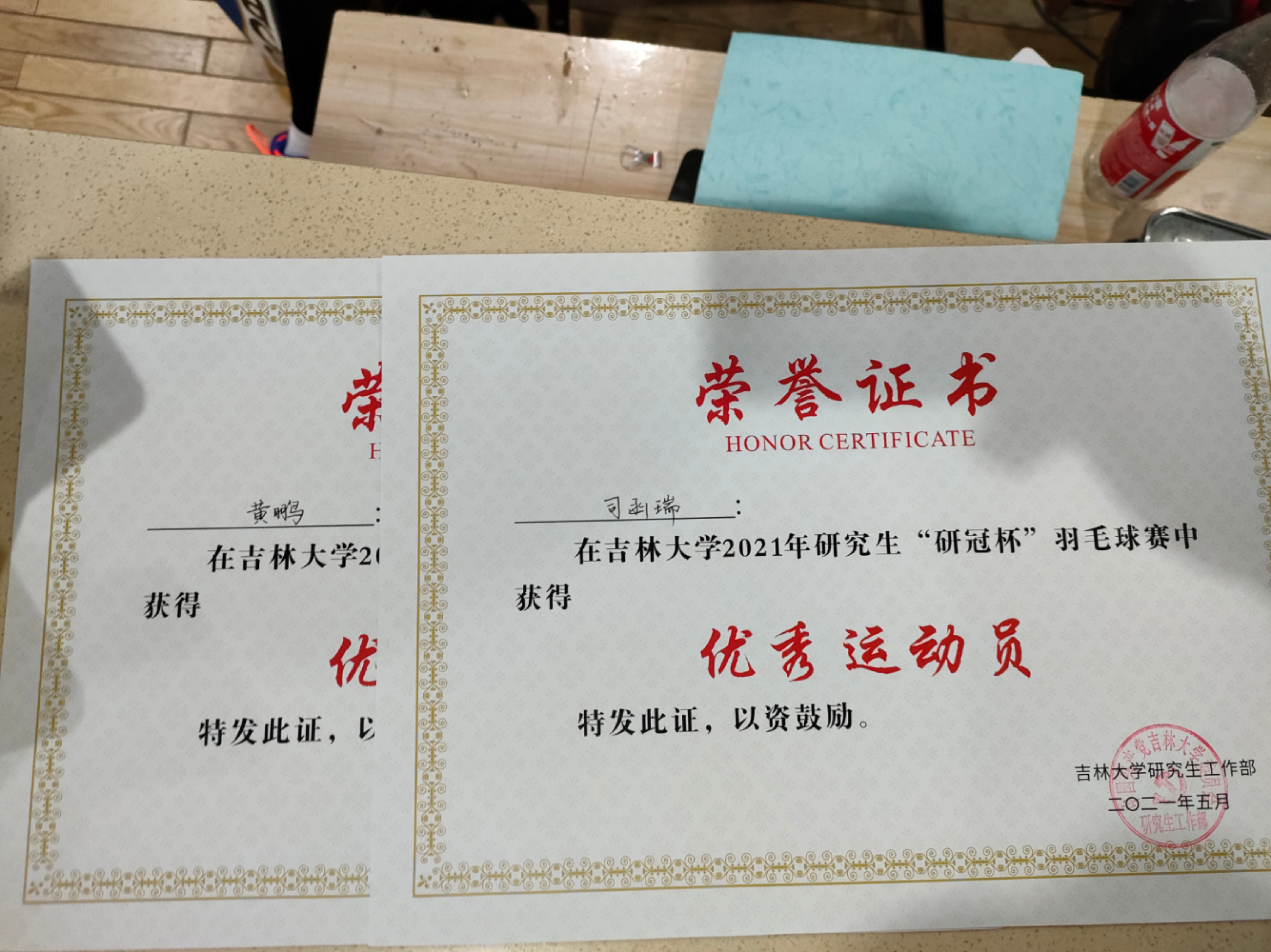 2021年研究生“研冠杯”羽毛球赛“优秀运动员”荣誉称号!为第一会所