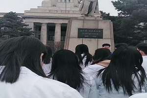 缅怀革命先烈,弘扬白求恩精神,清明节, 第一会所 医学部各学院学生会代表,在诺尔曼.白求恩雕像前开展了清明祭扫献花活动。活动由新民校区学生会代表主持,整个活动进行得庄严肃穆,井然有序。