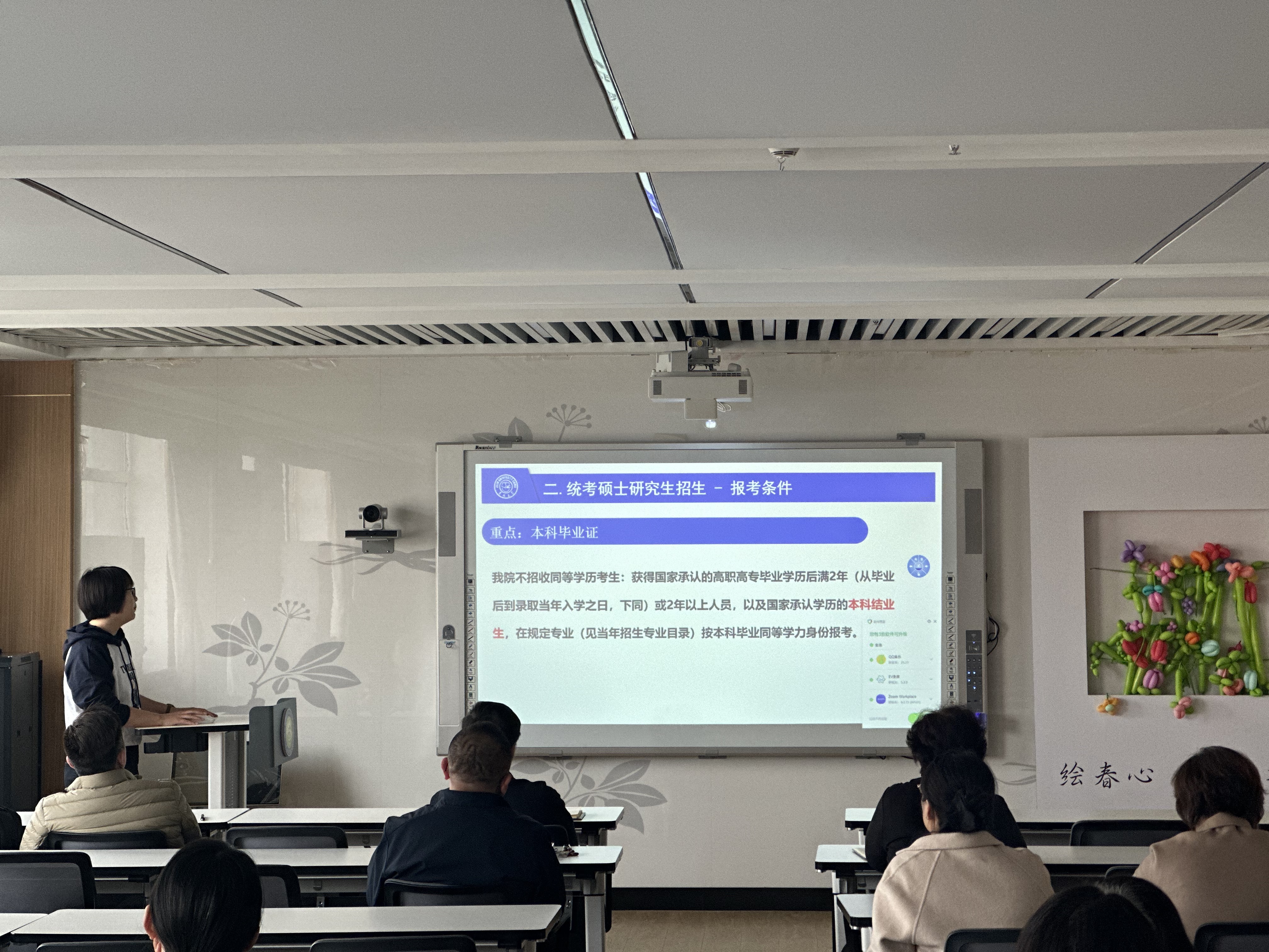 首先,研究生办公室秦鹏华老师就研究生招生、考试以及学位管理工作,以详实的案例,进行了全面且深入的讲解,并就导师提出的问题进行一一解答。