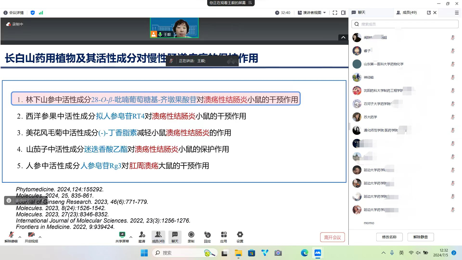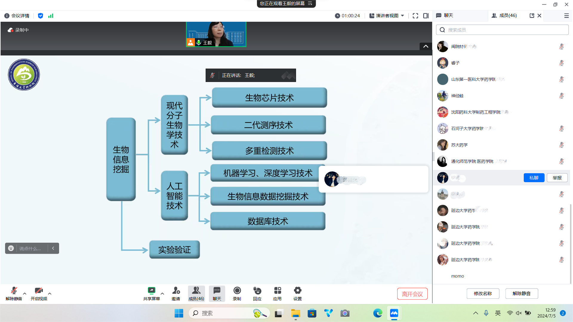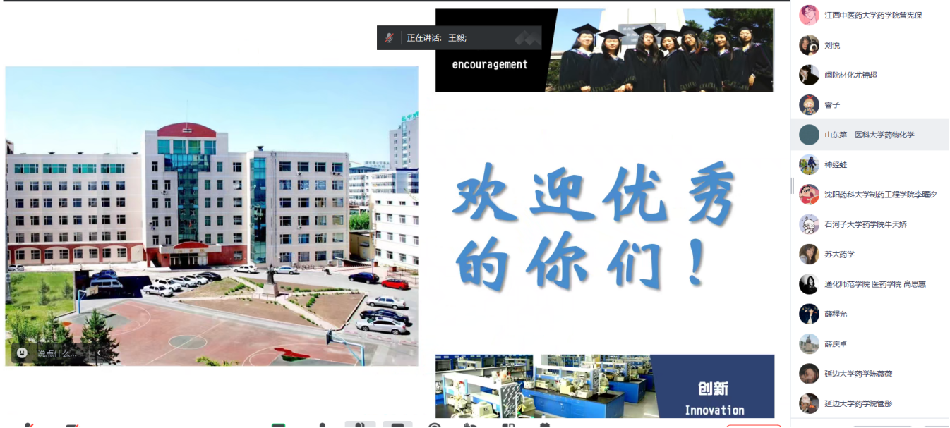 利用2024年7月5日的午休时间,组织大连理工大学、沈阳药科大学、延边大学、石河子大学、苏州大学、山东第一医科大学、海南大学、广西大学、江西中医药大学、桂林医学院、长春中医药大学等近二十余所大学的学生举行了研究生招生(线上)宣讲会。