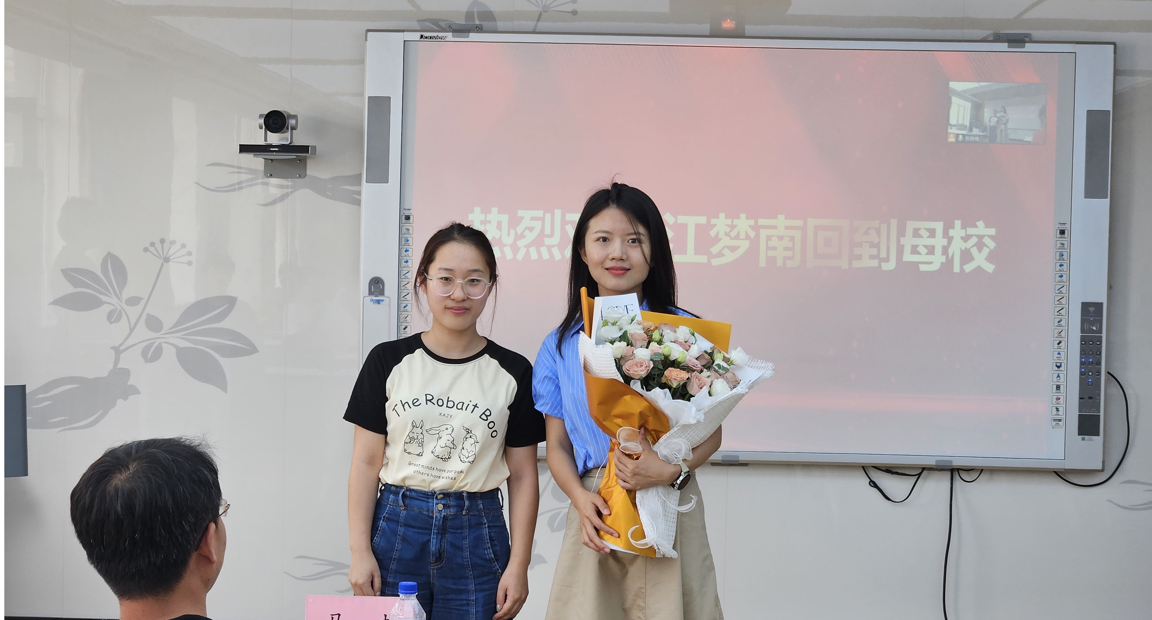 最后,学生代表郑琳琳向梦南师姐献上鲜花,表达了同学们对梦南师姐深深的感动与敬佩!