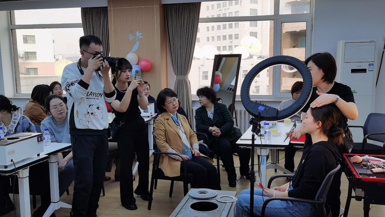 教职工设计日常的妆容,讲解上妆技巧,并拍摄了精美的工作照片。活动荣幸邀请到了学院领导班子以及全员女教职工老师参加了此次活动。