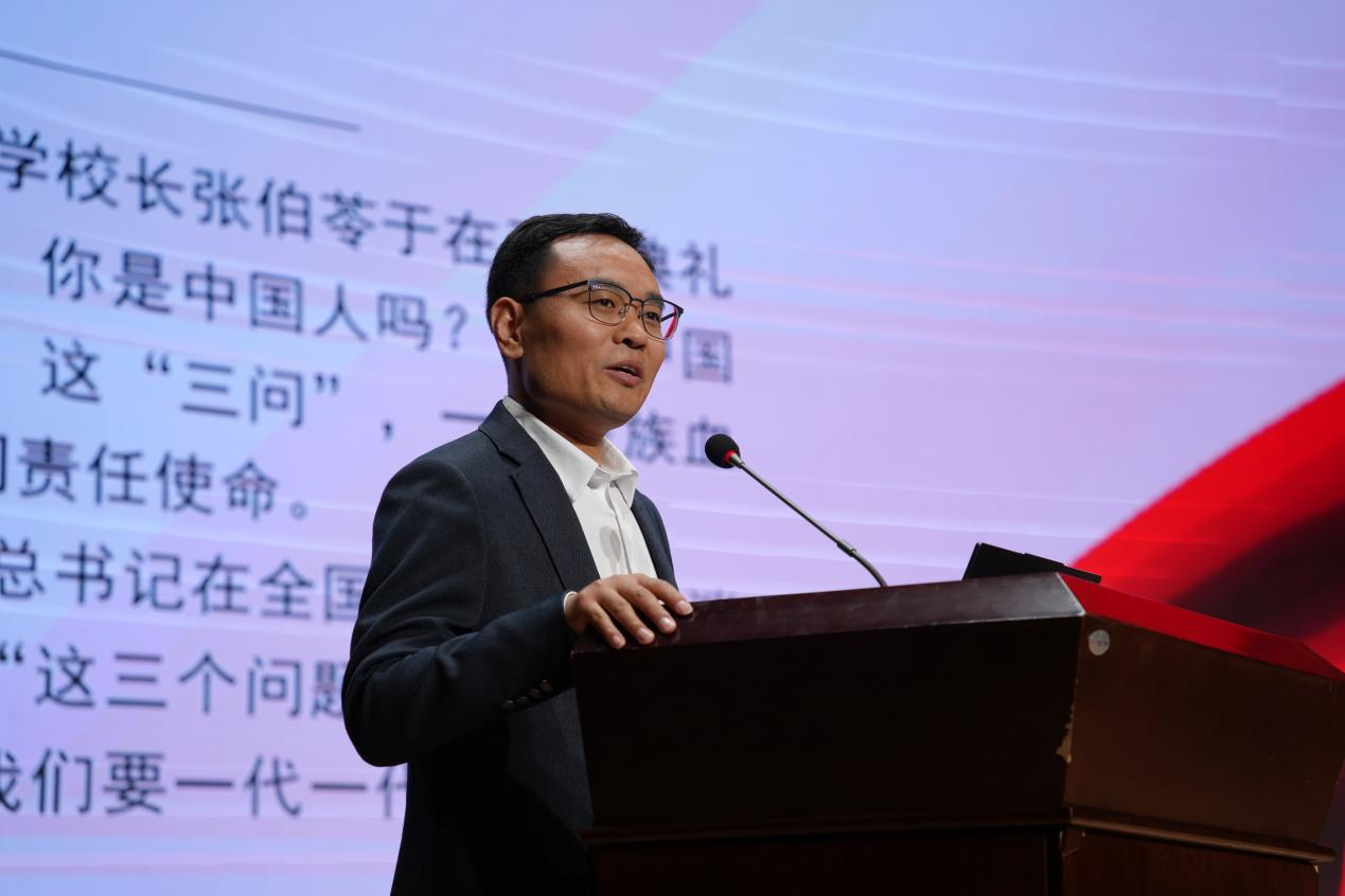 孙曙光以《新时代青年大学生的使命与担当》为题,立足“百年未有之大变局”的时代背景,以“中国共产党与中国青年”的深刻关联为切入点,通过张伯苓校长“你是中国人吗?你爱中国吗?你愿意中国好吗?”的经典“爱国三问”,为新生搭建起从历史纵深到现实关怀、从国家命运到个人成长的使命认知框架。